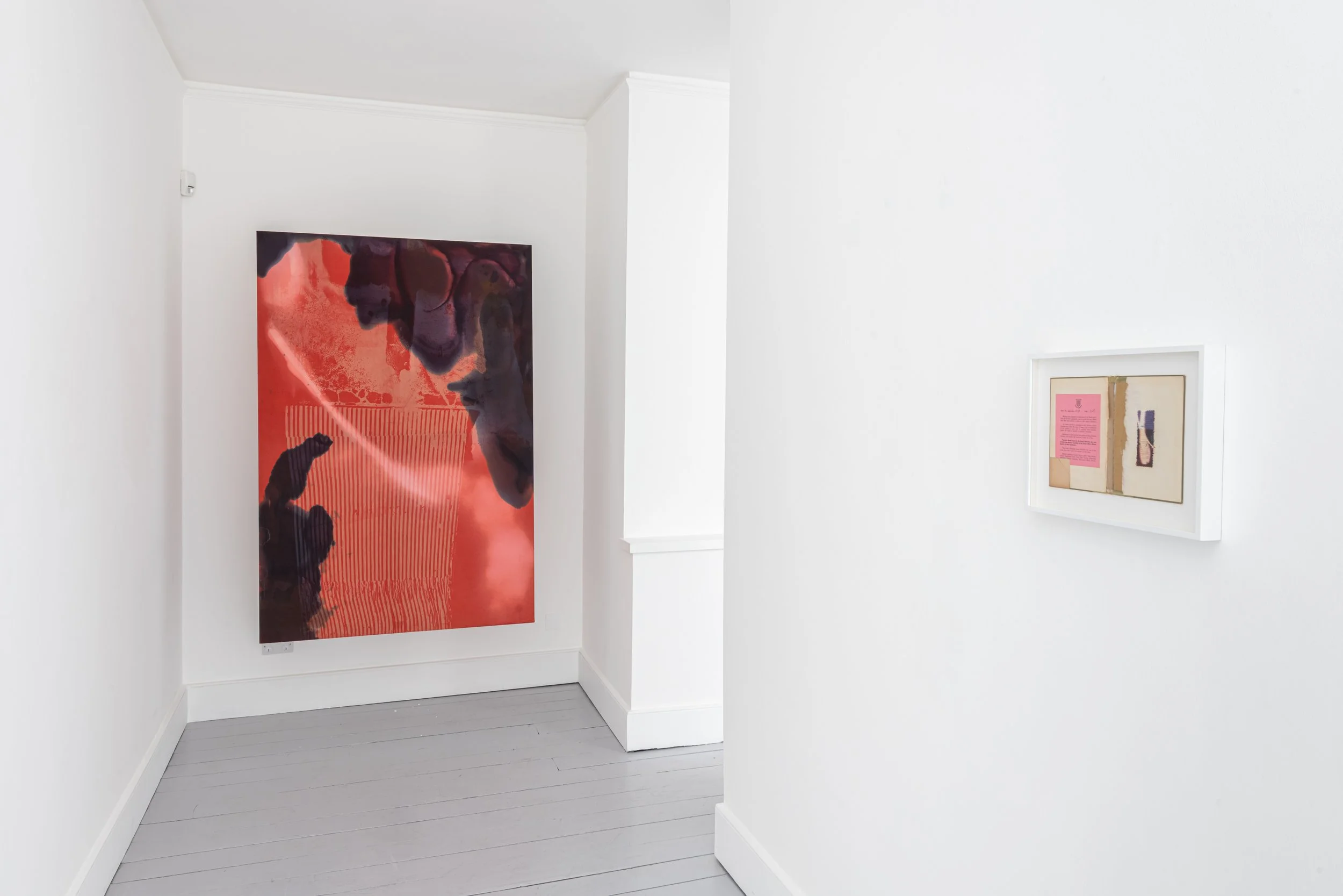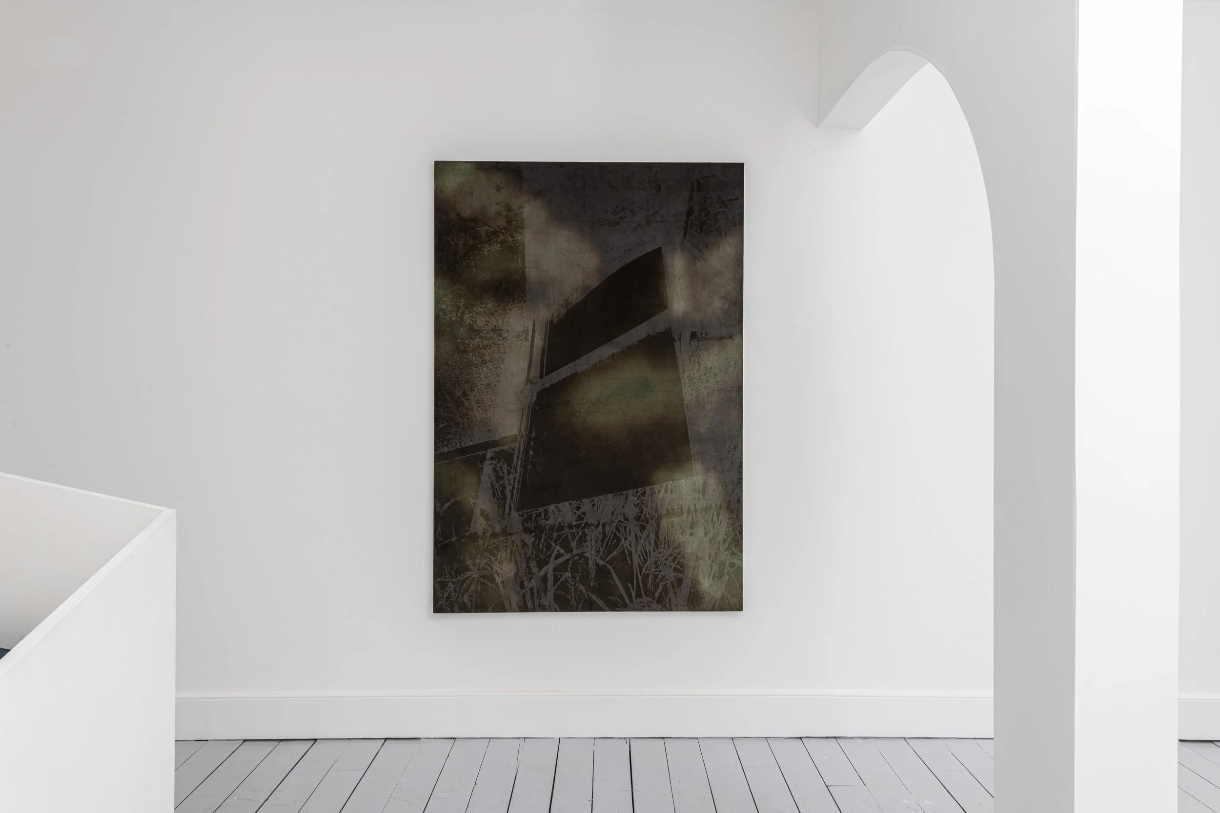 Thomas Brewin, an artist whose practice considers contemporary display conventions, was brought in to accentuate Antonello’s philosophy of perception. Brewin reconfigures the gallery architecture to support Antonello’s paintings, conceptually comparable to James McNeill Whistler’s The Peacock Room (1876) — a seminal example of a room realised as a total unit of art. Brewin’s spatial interventions enrich Antonello’s Gesamtkunstwerk (all-embracing) approach and his artistic investigation into Hegel’s “aufheben” theory. These elements together draw the viewer into a corporeal negotiation between space and artwork.